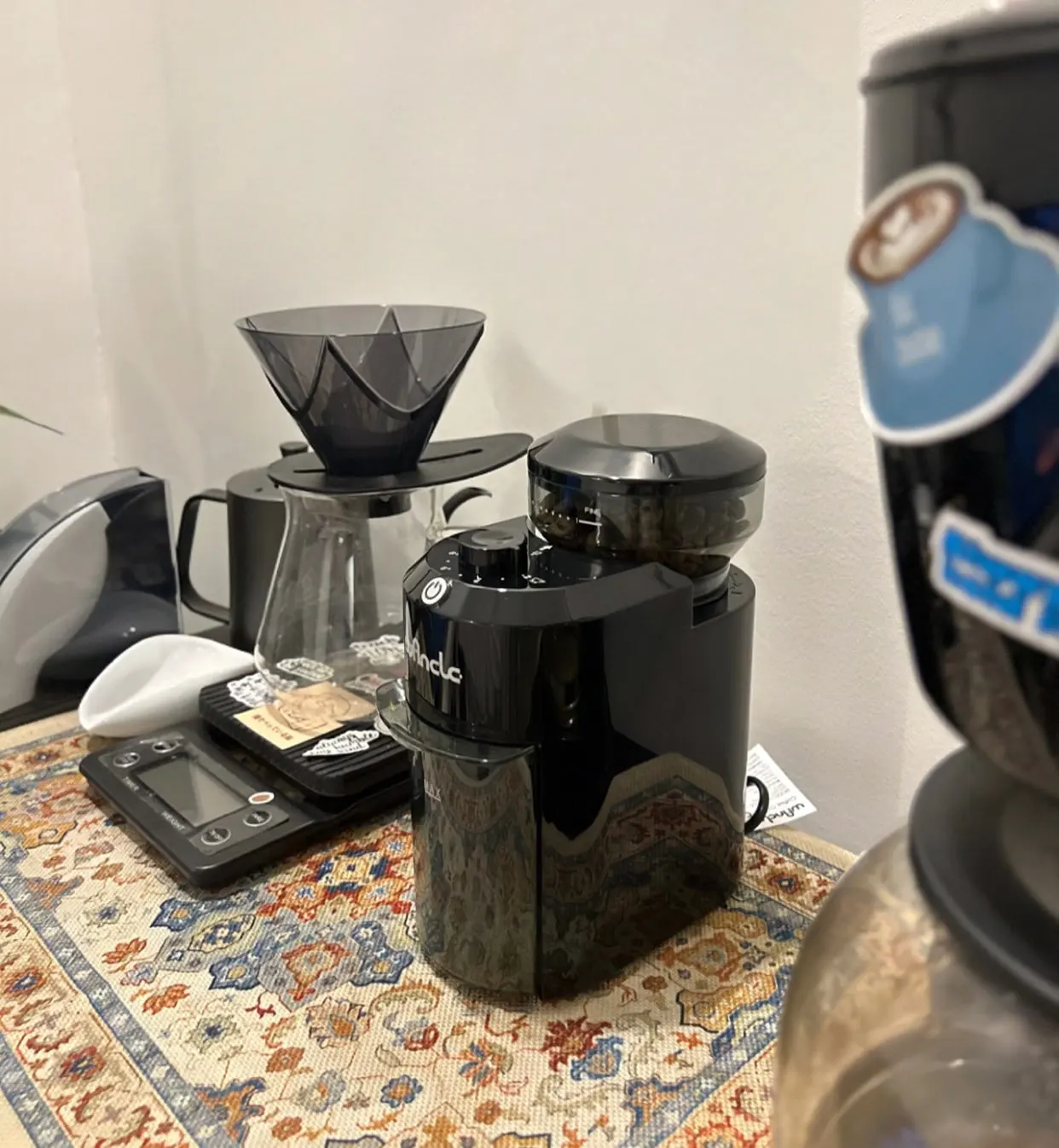 A small electric grinder is useful for home grinted sweet and consistent and price sweet size chois for beginners in the v60 It is recommended and strongly estimated to weigh the degree of grinding 28